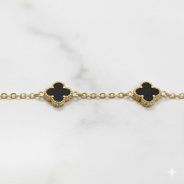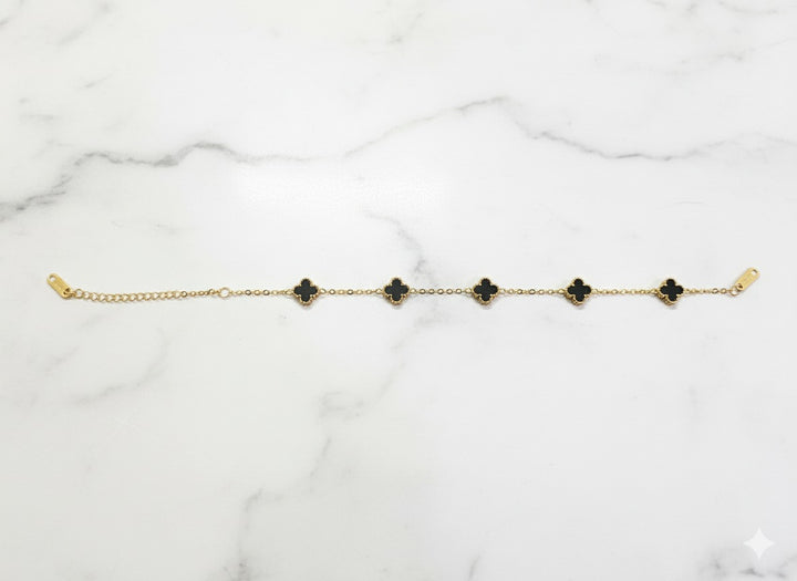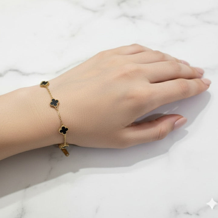 Elevate your style with the Black Clover Double-Sided Bracelet, a chic and versatile piece that defines modern luxury. Designed with signature black enamel clover charms on both sides, this bracelet offers a reversible look — giving you two stunning styles in one. The elegant gold detailing adds a touch of sophistication, making it a perfect accessory for both casual outings and special occasions.